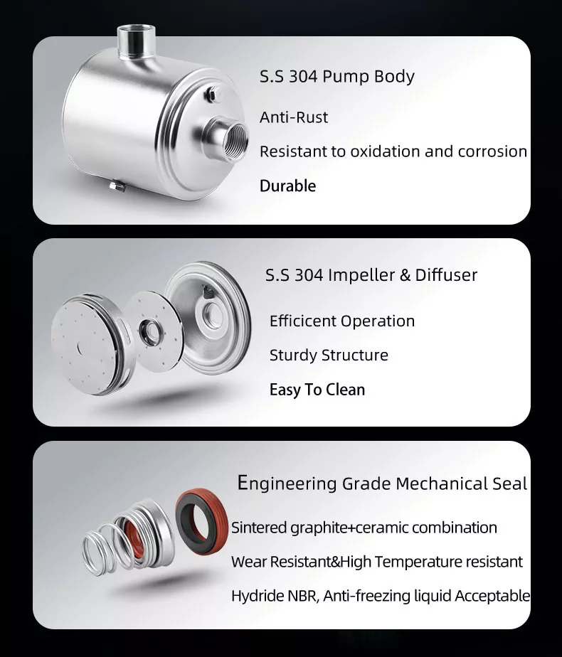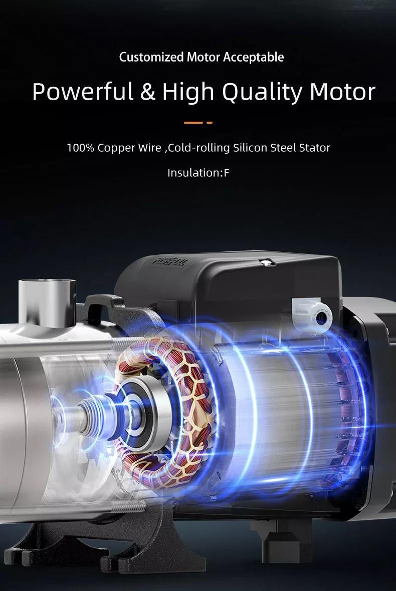 1. Viacstupňové odstredivé čerpadlo je vertikálna konštrukcia s malým pôdorysom. Ťažisko čerpadla sa zhoduje so stredom nohy čerpadla, takže beží hladko, má malé vibrácie a má dlhú životnosť.