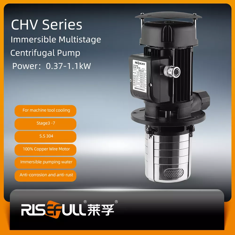 Nasleduje predstavenie radu CHV Ponorné viacstupňové odstredivé čerpadlo CHV, tiež známe ako ponorné čerpadlo alebo čerpadlo stroja, sa používa na dopravu chladiacej kvapaliny obrábacích strojov, mazív, prenosu kondenzovanej vody, priemyselných čistiacich zariadení, filtračných systémov a ďalších aplikácií vhodných na použitie s ponornými čerpadlami. Je ideálny pre integráciu s obrábacími strojmi, brúskami, CNC obrábacími centrami, EDM strojmi, priemyselnými čistiacimi strojmi a ďalšími zariadeniami.
